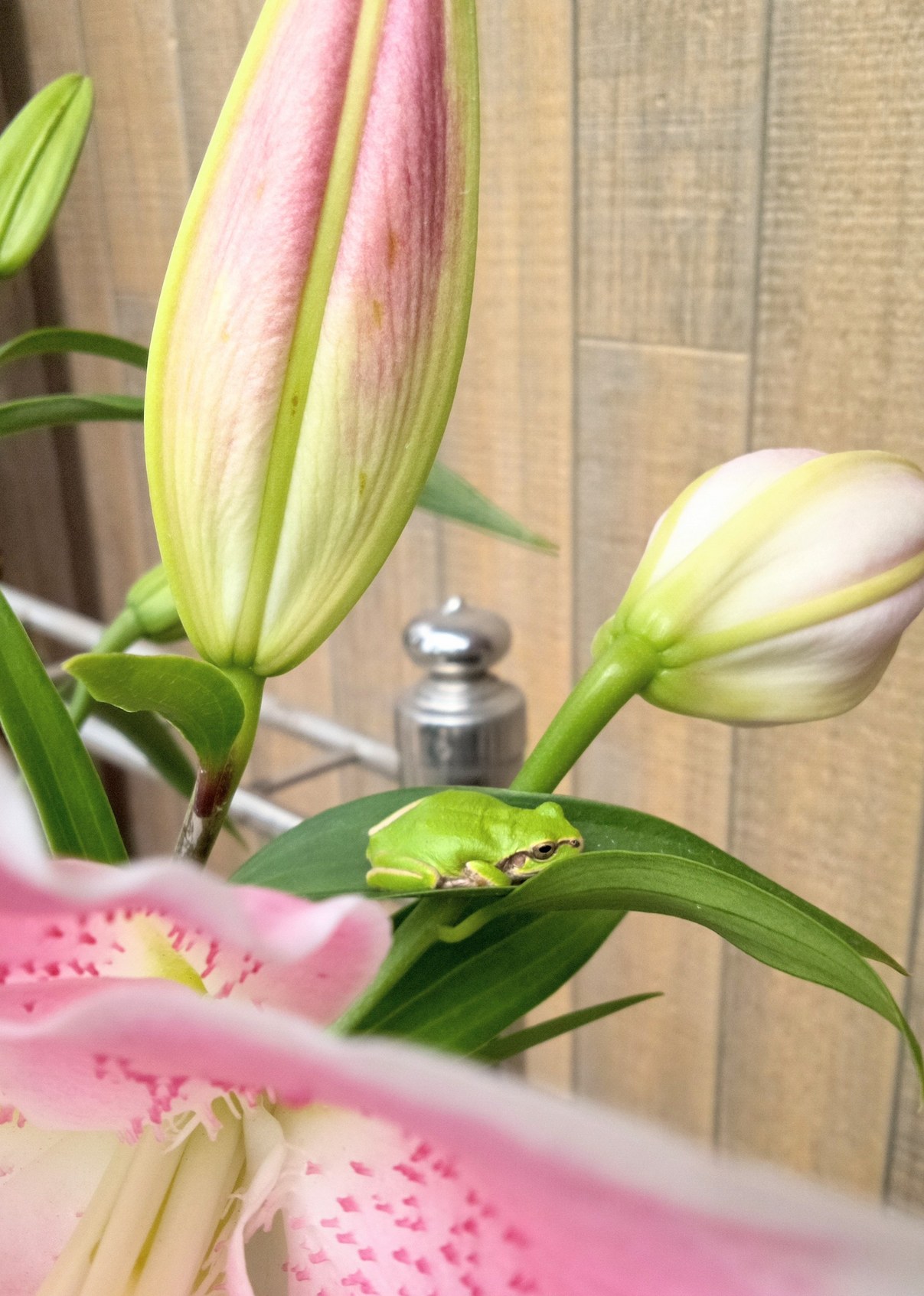 ユリの葉の上のカエルと遭遇しました🐸✨